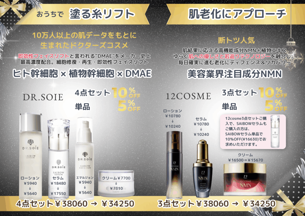 そこで、DR.SOIEのSAIBOWシリーズ・12cosmeシリーズの割引キャンペーンを開催。