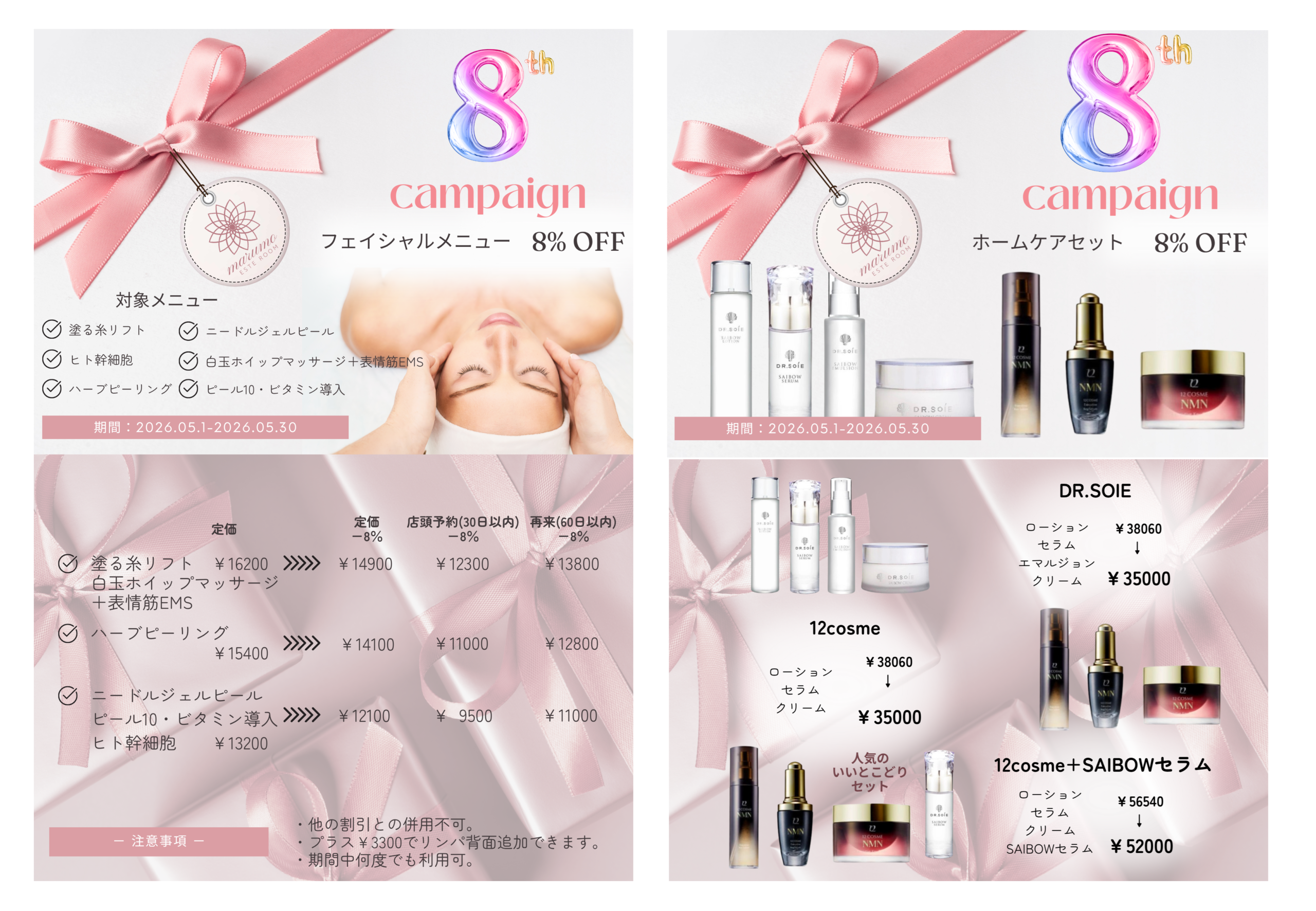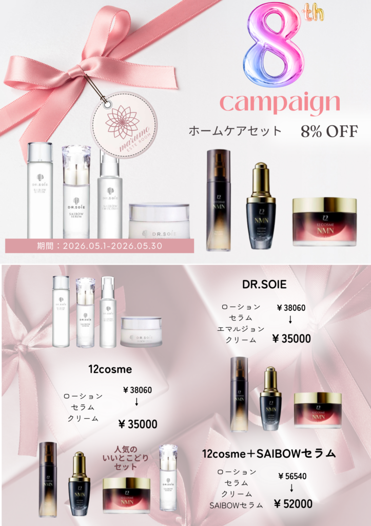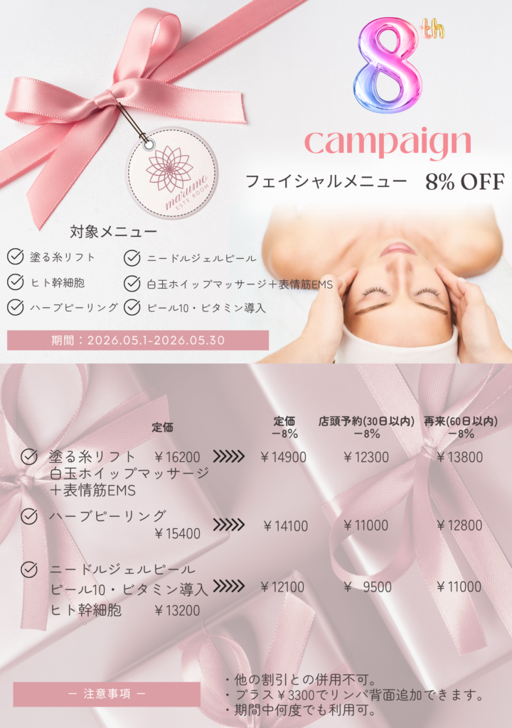 おかげさまでまるもエステルームは5月で8周年を迎えます。
